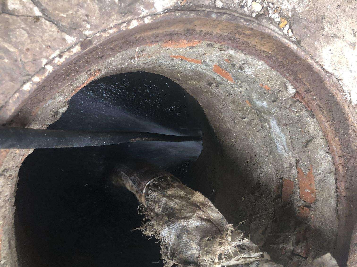 2、稀釋污泥。使用(高壓清洗車)或消防水沖稀窖井、雨水井內雜物及污泥,以便清理雜物。