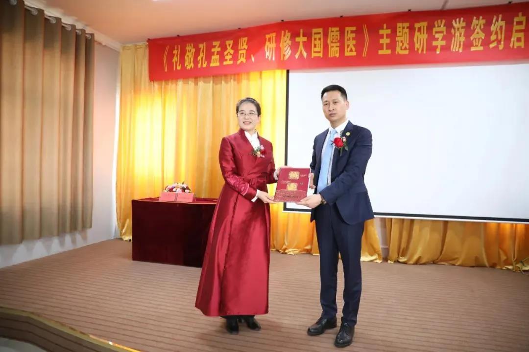孟子國際旅游有限公司三方聯合主辦的《禮敬孔孟圣賢 研修大國儒醫》主題研學游簽約啟動活動在山東孔圣府中醫藥文化產業園舉行。
