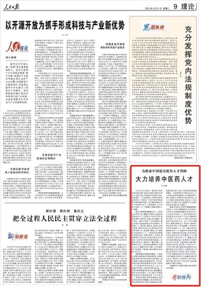 人民日報:大力培養中醫藥人才