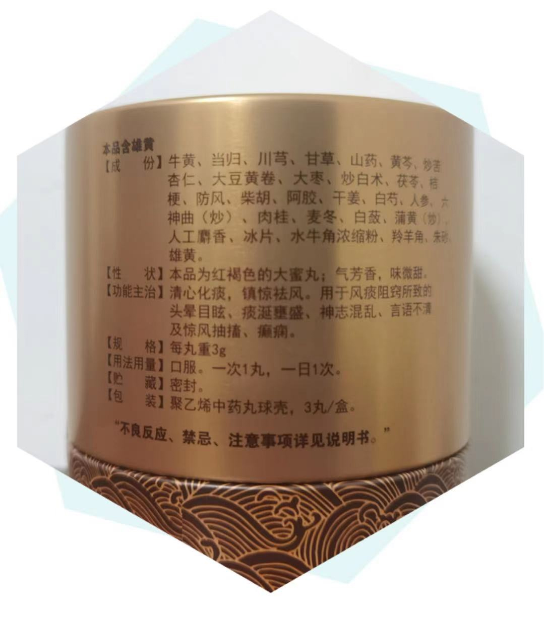 它的成分牛黃、羚羊角、水牛角、黃芩等寒涼之品清心火,化痰熱,鎮肝熄風;